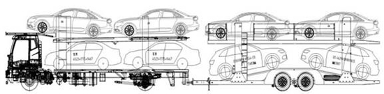 對于車輛運輸車(轎運車)標(biāo)準(zhǔn)車型的規(guī)范,文件中要求,符合《汽車、掛車及汽車列車外廓尺寸、軸荷及質(zhì)量限值》(GB 1589)要求的平頭鉸接列車、長頭鉸接列車及中置軸車輛運輸列車車型。