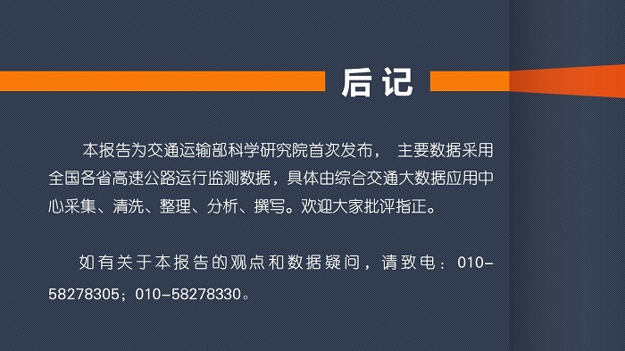 交通運輸部科學研究院、綜合交通大數據應用中心起草的《2016年中國高速公路運行大數據分析報告》系列二:高速公路物流通道運行分析,以(北京、內蒙古、海南、西藏、新疆除外)26個省份高速公路聯網收費數據(80億條)為基礎,通過流量分配等技術處理,系統詮釋高速公路物流通道運行規律和貨運特征,揭開物流通道運行效率、運輸動態和服務水平。