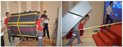 本次比賽涉及家具拆、裝、包裝,冰箱、鋼琴搬運及四通搬家企業(yè)文化和組長行為情景模擬等內(nèi)容。