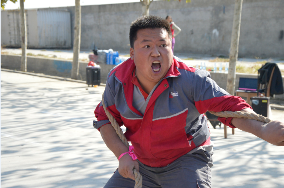 咬緊牙關(guān)、使勁全力,參賽選手們齊拉合拽,一旁隊友們歡呼鼓舞,打氣加油!