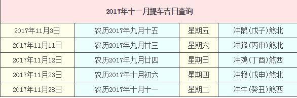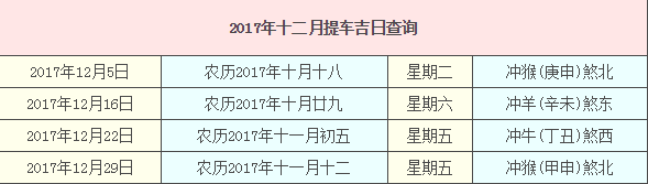 2017年12月提車吉日查詢,2017年提車吉日一覽