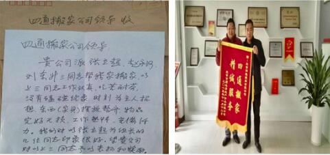 四通搬家收到一封封用戶的表揚信,一面面用戶送來的錦旗不是偶然是必然。昨天四通搬家唐山公司領導又收到一份信,打開一看,又是一位顧客寫 …